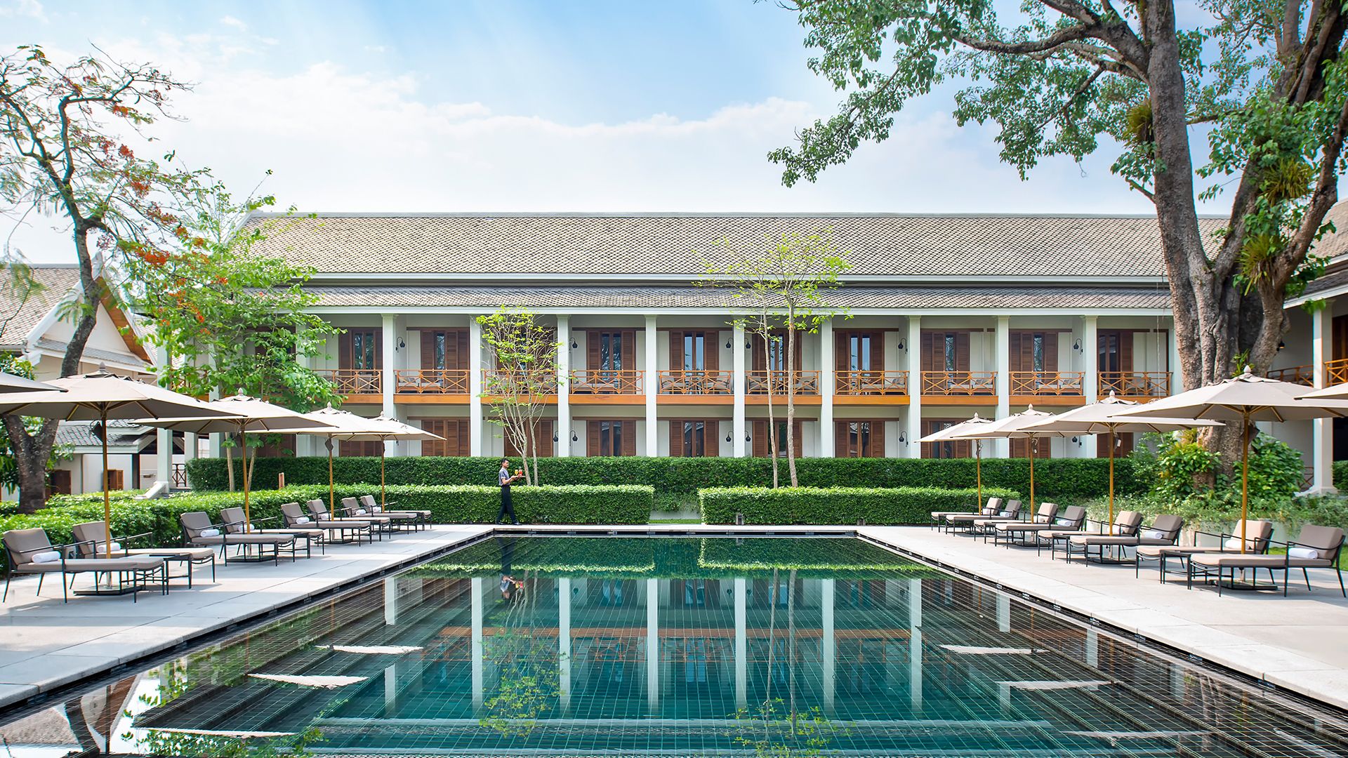 Gaze across lush green mountains while absorbing the soothing jungle atmosphere at the boutique Homm Souvannaphoum Luang Prabang - a luxurious oasis in the heart of Luang Prabang, less than a kilometre's walk to the town centre. Begin your day with a round of petanque or morning yoga before sampling delicious cuisine at the hotel's Elephant Blanc restaurant. Set yourself up with a book and a drink by the lounger-lined pool, indulge at the expansive spa (charges apply) or maintain your exercise routine at the sleek fitness centre. Enjoy the best of the region, with bicycles available for guests to explore the nearby Mount Phousi, or call on the expertise of staff, who can assist with booking a tour or reserving a private transfer. An unmissable sight within close reach is Kuang Si Falls, located within a 45-minute drive. Round out your day among the vibrant colours of the bustling local night markets, experiencing them from a uniquely local perspective with your night-market companion, courtesy of the hotel.