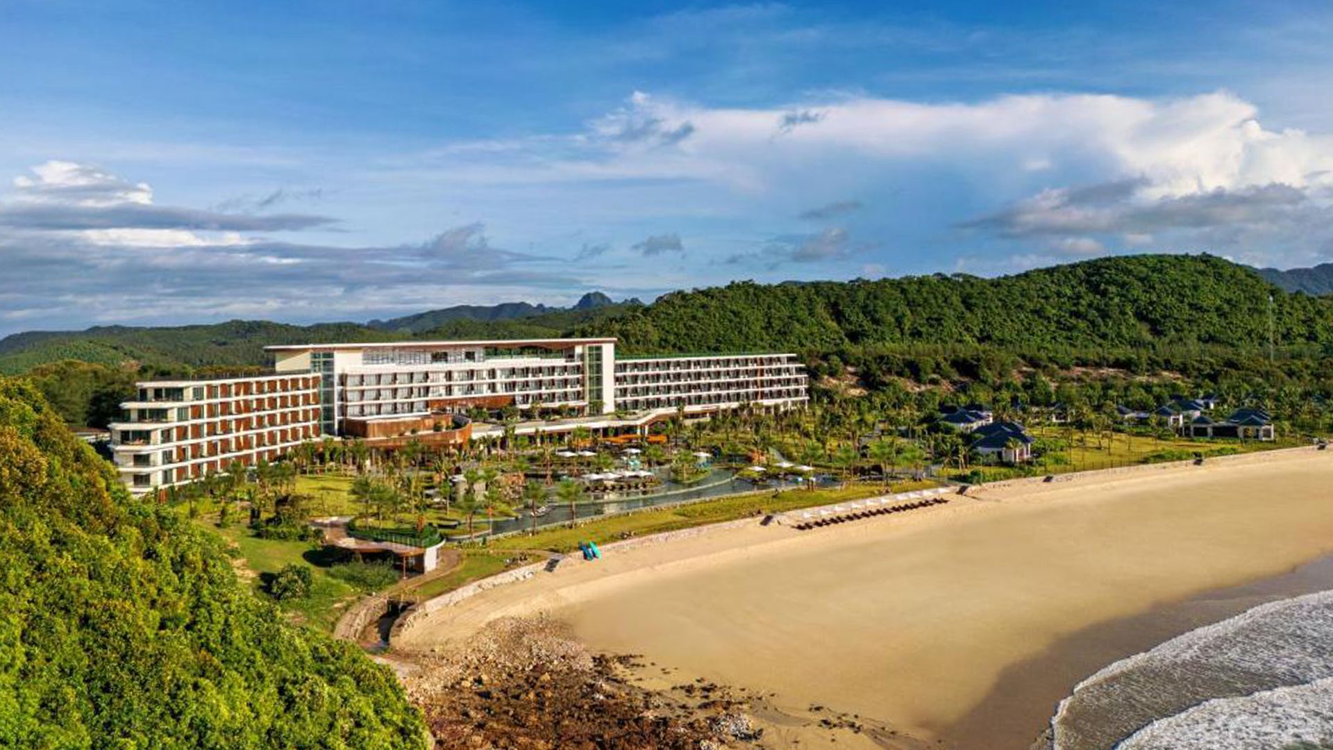 Heed the call of Ha Long Bay's famed emerald waters with a stay at this secluded paradise on the sands of Quan Lan Island. Surrounded by unspoilt tropical greenery and calm waters, this sprawling resort invites you to slow down - lounge by an expansive lagoon pool, unwind with treatments at Angsana Spa and Onsen or listen to the rhythmic hush of the tide along the pristine beach. Four exquisite restaurants and bars serve up satiating experiences, from authentic Vietnamese at Market Place to crafted cocktails with a view at The Sky Bar at the resort's peak. When adventure calls, get your thrills on Vietnam's first zipline, practice your putt on the mini golf course, take a kayak out or add a touch of elegance with a luxury cruise through the UNESCO-recognised Ha Long Bay.